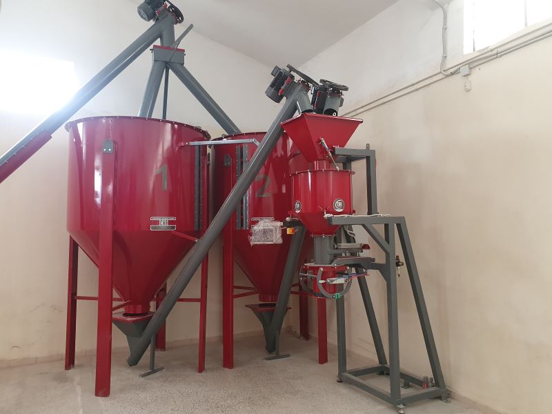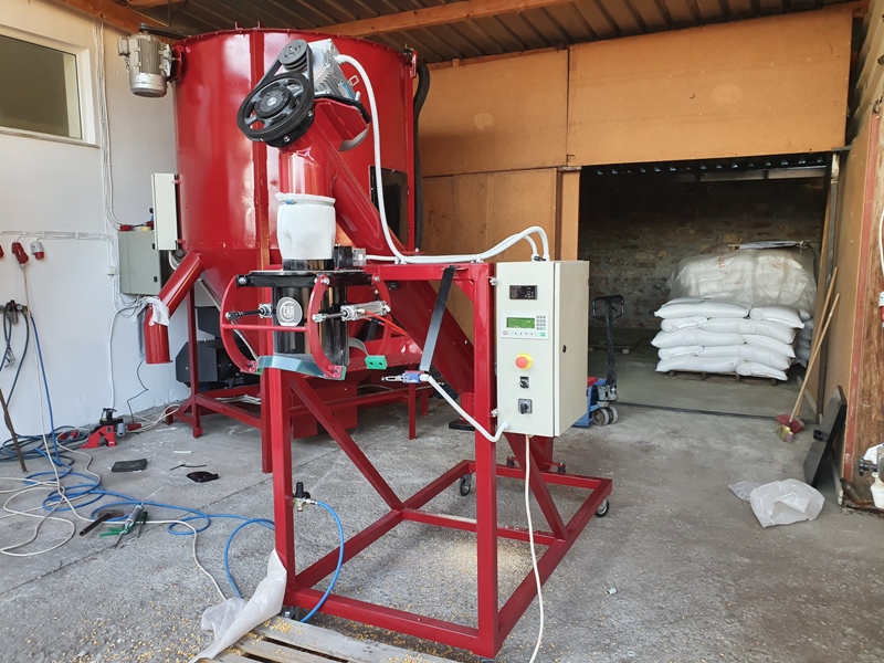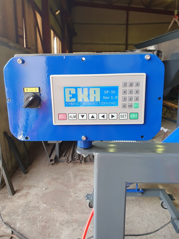 - Απευθείας ζύγιση στο σακί με 3 ίππους κινητήρα, Φ150 κοχλία με χοάνη υποδοχής και πλήρη ηλεκτρολογικό πίνακα με ρυθμιστή συχνότητας (inverter)
