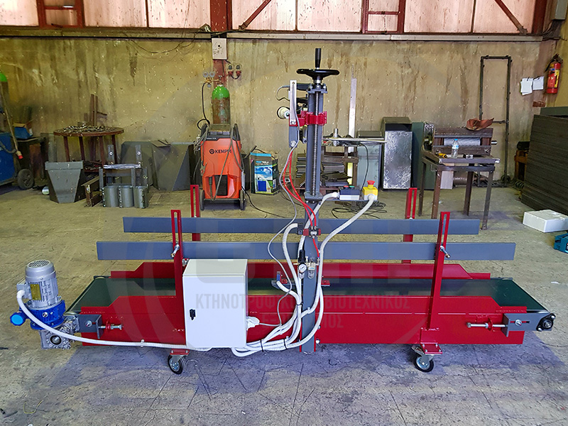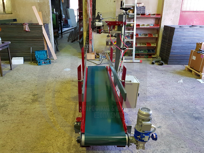 Ταινία 3 μέτρα μήκος με ενσωματωμένη ραπτική μηχανή για την αυτόματη συρραφή των σακιών. Οι στροφές της ταινίας είναι ρυθμιζόμενες.